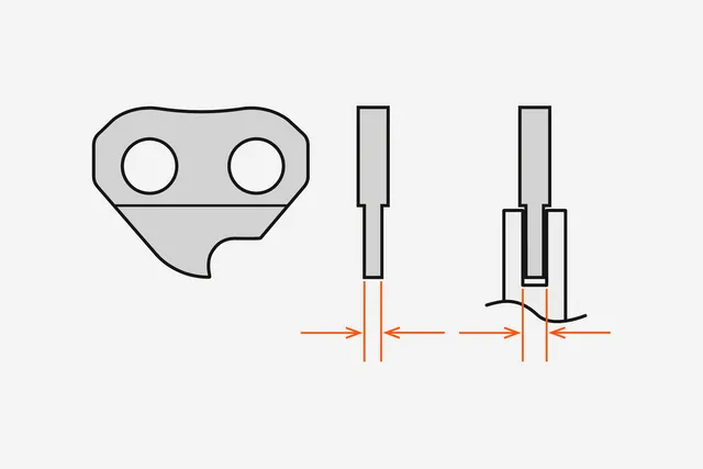 Debljina označava koliko je pogonska karika široka, tj. koliko duboko ulazi u kanal vodilice.